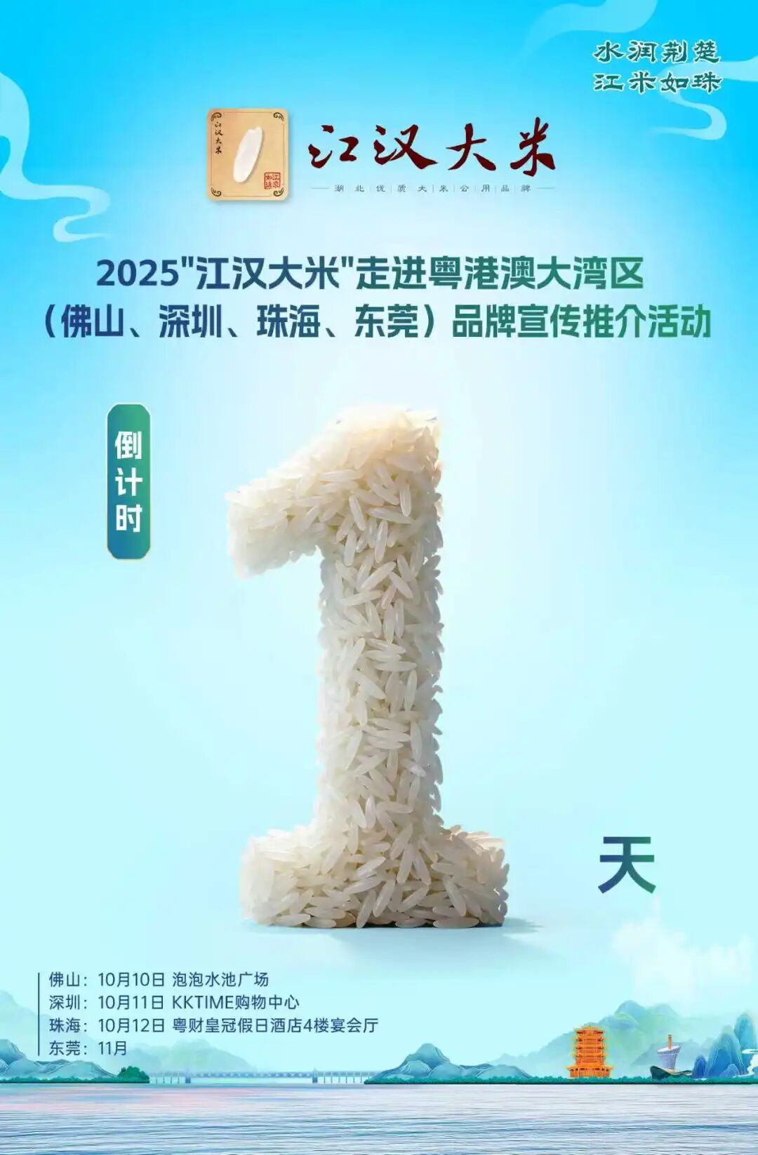 10月10日,长粒、优质、好吃的湖北靓米“江汉大米”又要来大湾区圈粉、送福利啦!——2025“江汉大米”走进粤港澳大湾区(佛山・深圳・珠海・东莞)品牌宣传推介活动即日开启!